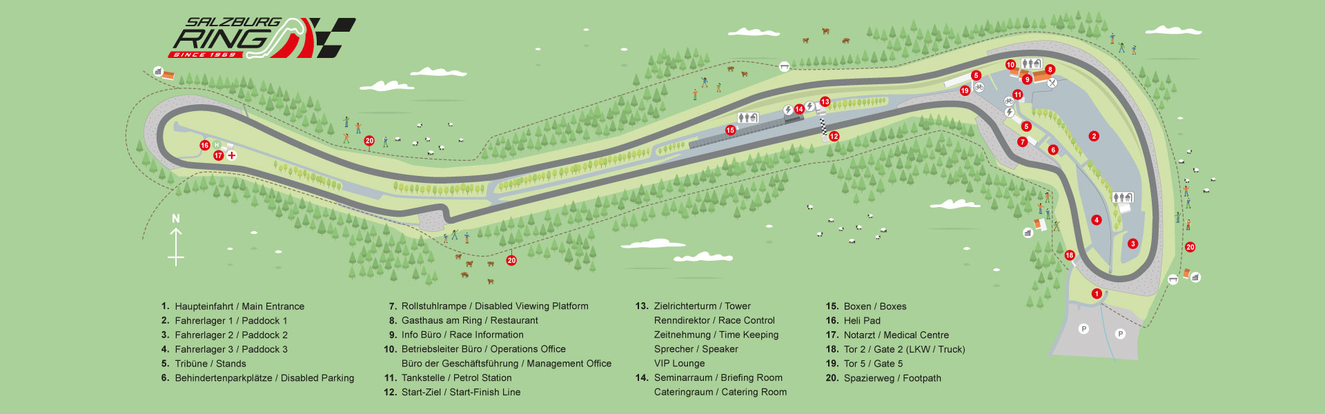 Der Salzburgring hat eine Rundenlänge von je 4,255 km [ 2,64 mi ] und enthält eine Steigung von 3,8 % sowie ein Gefälle von 1,8 %. Insgesamt mussten die Kickbiker zehn Runden auf der Rennstrecke zurücklegen.